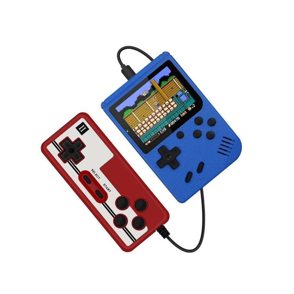 A compact 8-bit handheld gaming console featuring 500 built-in classic games, TV output, optional 2-player mode, and a long-lasting rechargeable battery—perfect for retro gaming anytime, anywhere.