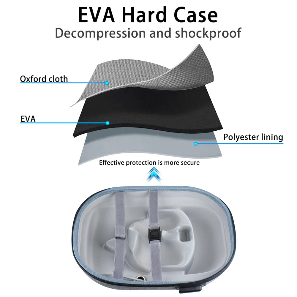 The HUADAI Hard Carrying Case provides reliable, travel-ready protection for your Oculus Quest 2. Built with a sturdy EVA shell, it shields your headset from drops, impacts, dust, and scratches—ideal for daily storage or taking your VR setup on the go. Its molded interior keeps the Quest 2 securely in place while offering space for essential accessories such as controllers, charging cables, and small add-ons.