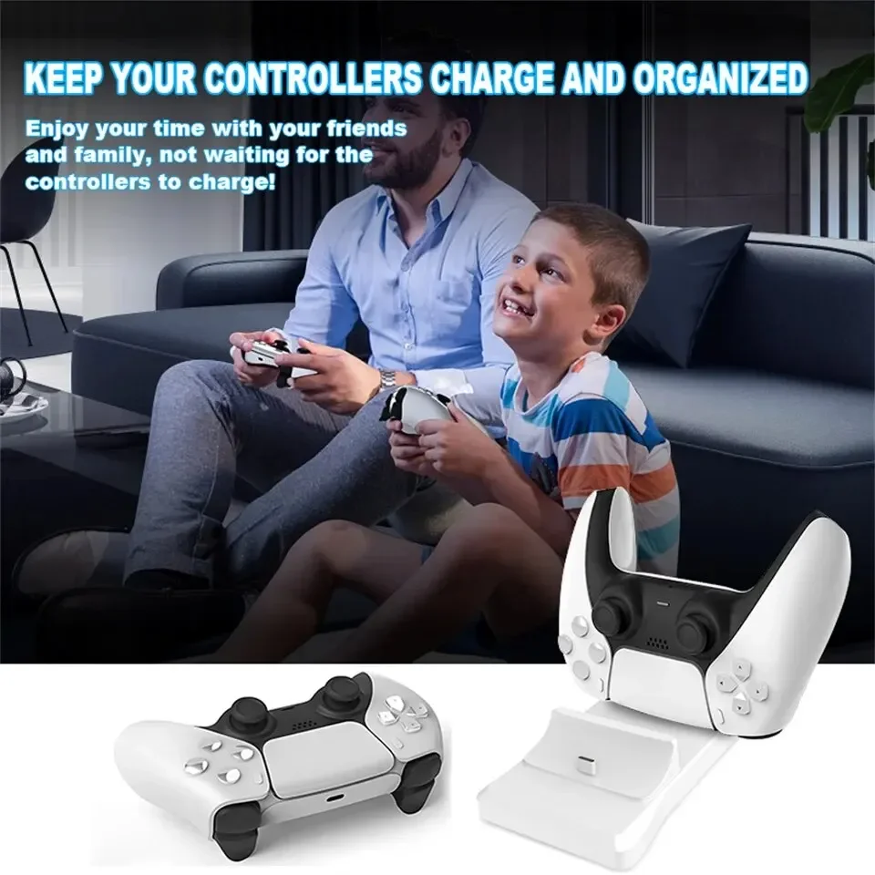 A fast, convenient dual charging dock for PS5 DualSense controllers, featuring wireless charging, organized storage, and reliable compatibility.