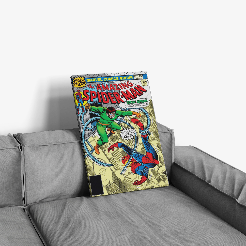 Own a piece of Marvel history with this collection of retro Spider-Man canvas posters, featuring iconic covers from Amazing Spider-Man #120 – The Fight and the Fury (May 1973), Amazing Spider-Man #137 – Death-Trap Times Three! (October 1974), and Amazing Spider-Man #157 – The Ghost That Haunted Octopus! (June 1976). Printed on premium cotton canvas and shipped rolled in a protective mailing tube for safe delivery.
