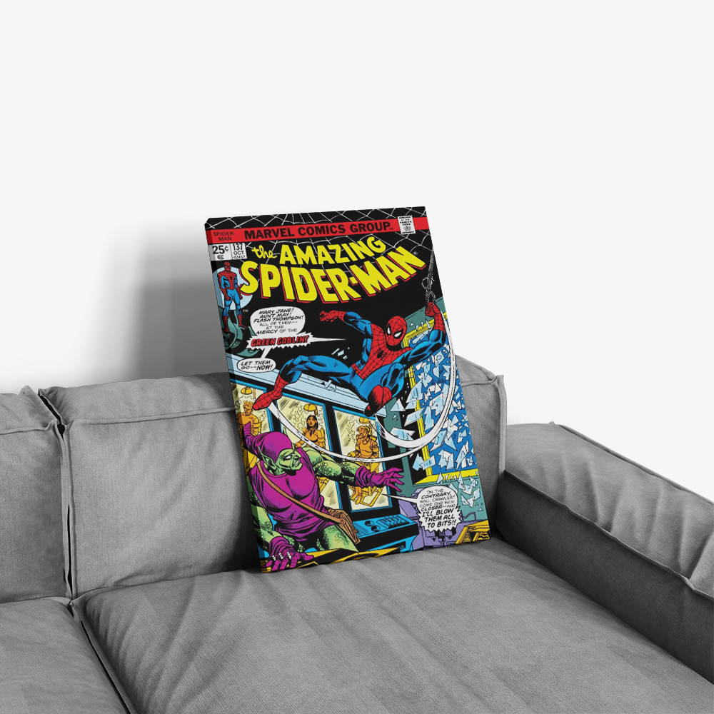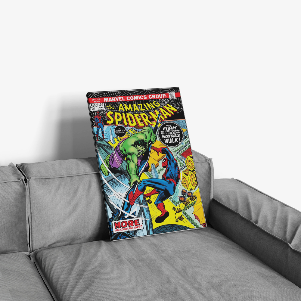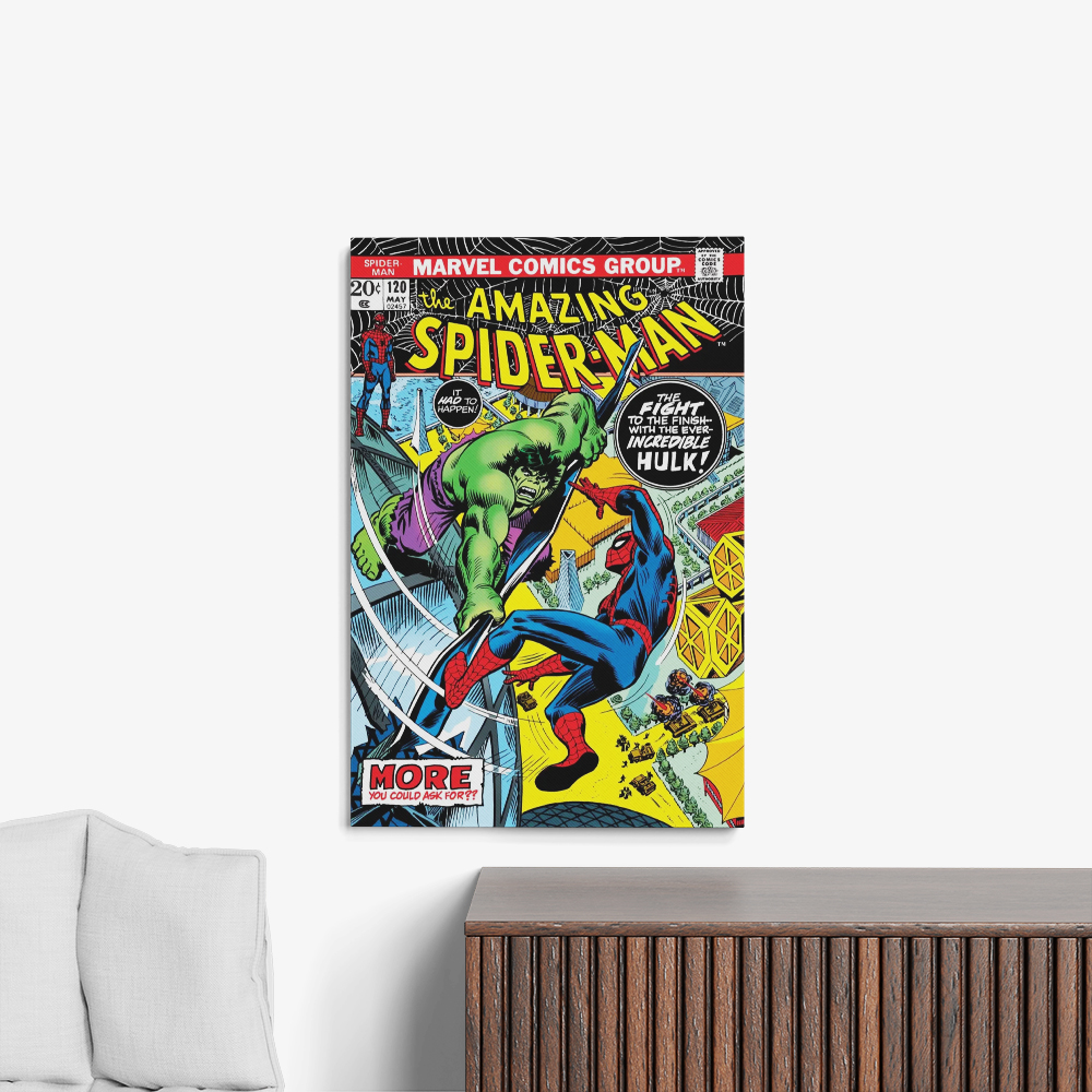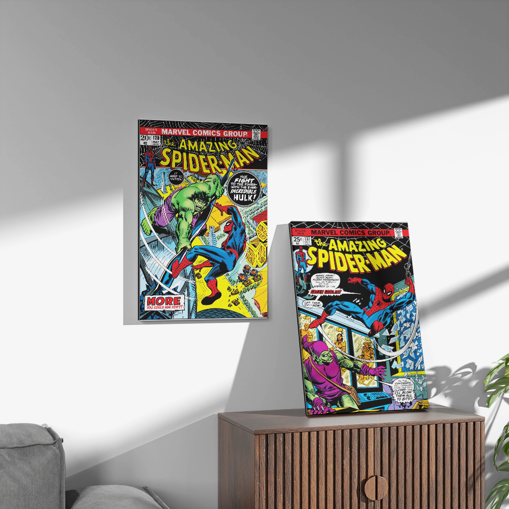 Bring the action of Marvel’s Bronze and Silver Age straight to your walls with this exclusive set of Spider-Man poster designs. Choose from three legendary covers — The Fight and the Fury featuring the Incredible Hulk (Amazing Spider-Man #120), Death-Trap Times Three! with the Green Goblin (Amazing Spider-Man #137), or The Ghost That Haunted Octopus! which includes Doctor Octopus (Amazing Spider-Man #157). Each poster is faithfully recreated on premium canvas for vivid color, durability, and true collector appeal.