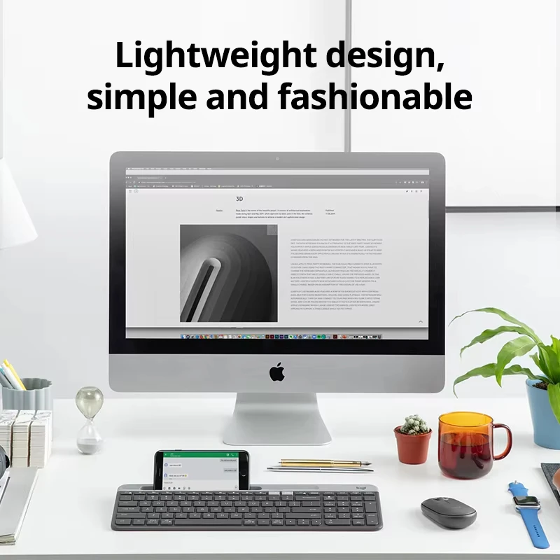 Perfect for multi-screen workflows, the K580 lets you type on your computer and instantly switch to your phone or tablet with a single tap. The built-in device cradle securely holds your smartphone so you can view notifications, messages, or apps while you work.