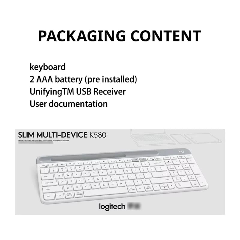 Designed for long-term use, the K580 includes automatic sleep mode to maximize battery life—lasting up to 24 months on a single set of batteries. Compact, stylish, and reliable, it’s the perfect keyboard for productivity at home, in the office, or on the go.